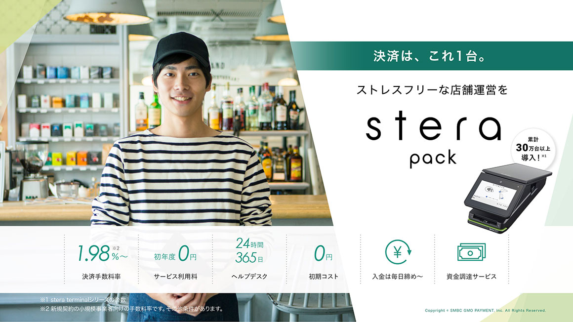 これ1台で30種類以上の決済が可能に。お店のキャッシュレス決済や集客のお悩み stera packで解決できます!