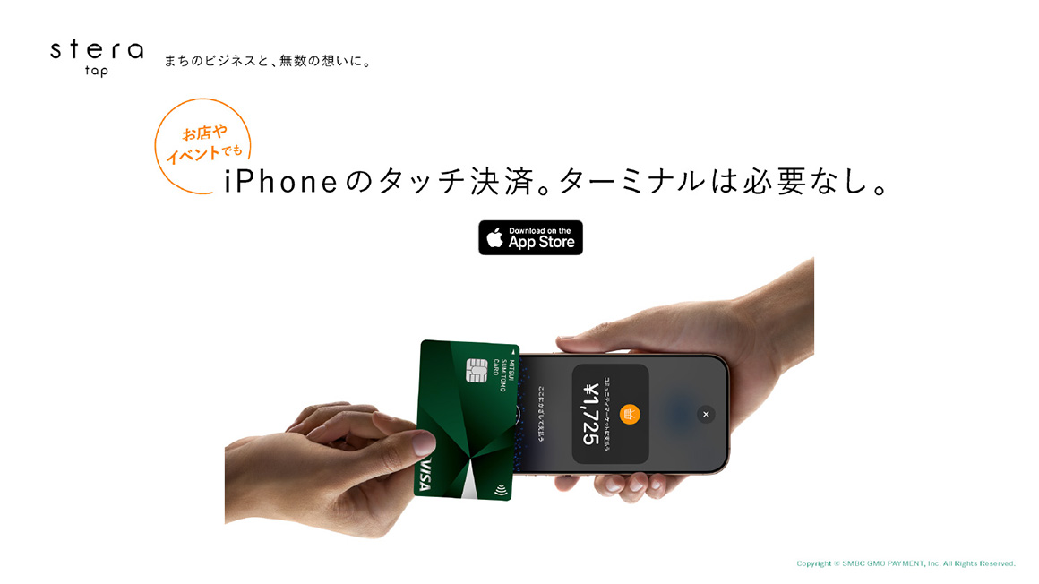 iPhone のタッチ決済*とstera tapを使えば、対面で非接触決済に対応できます。必要なのは iPhone だけ。追加のターミナルは必要ありません。